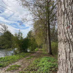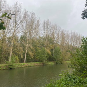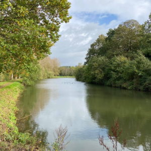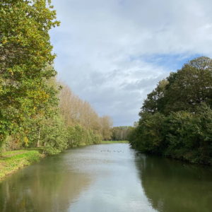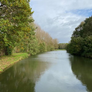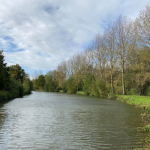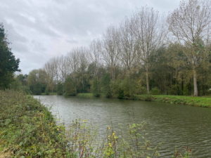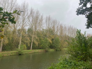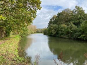 Le bras d’Asquimpont décrit un long méandre entre les anciennes papeteries de Virginal et l’actuelle écluse 5F.
