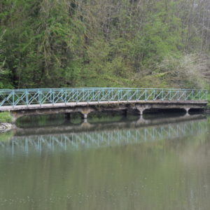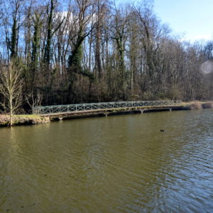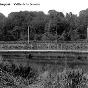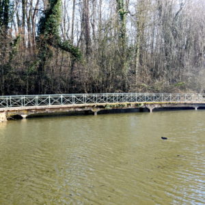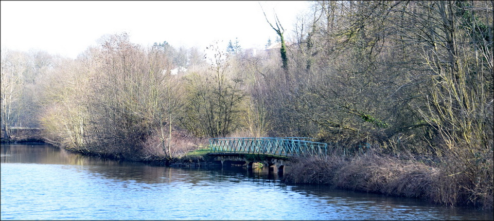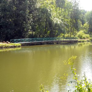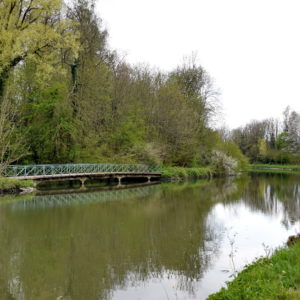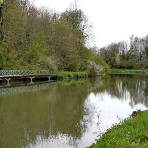 Une vieille passerelle en fer permet d’enjamber le vieux canal à 70 tonnes à l’endroit où il se connecte sur le canal à 300 tonnes . La passerelle entre les deux canaux