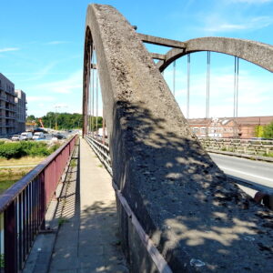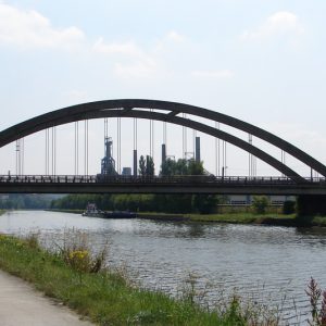 L’actuel pont de Clabecq a succédé à l’ancienne passerelle « Demeur » qui enjambait ici autrefois le canal à 70 tonnes.