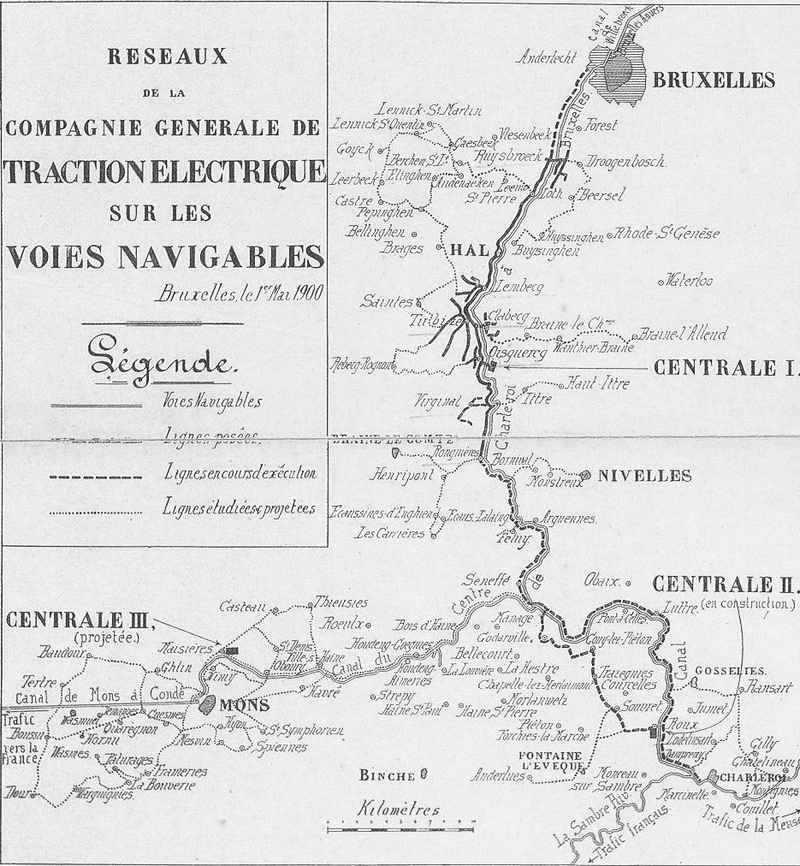 A la fin des années 1800, l’électricité était une denrée bien rare, réservée le plus souvent aux plus fortunés et aux industries. Voici une carte de notre région établie le 1er mai 1900 qui nous montre le modeste réseau de distribution dans notre région ainsi que les rares centrales qui l’alimentait.