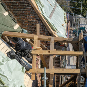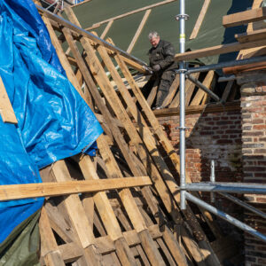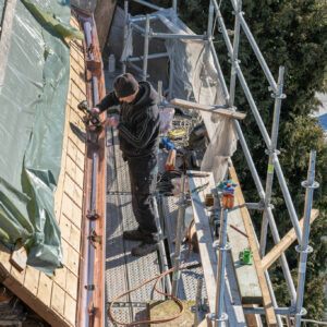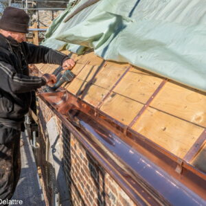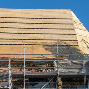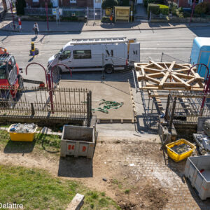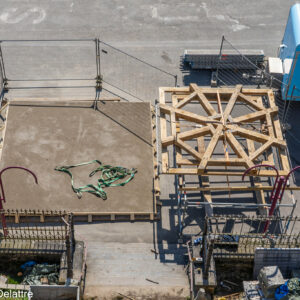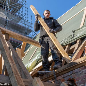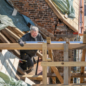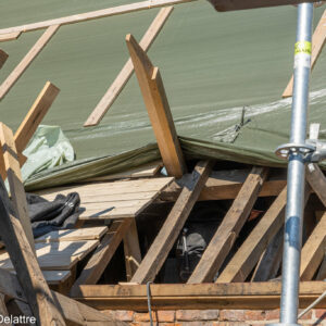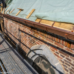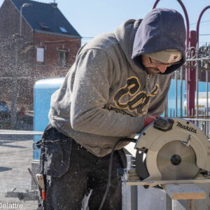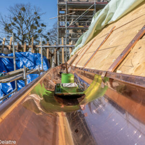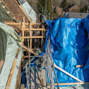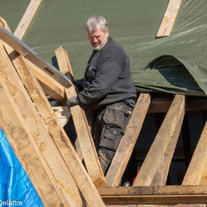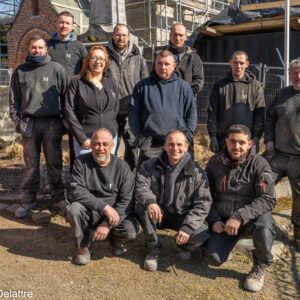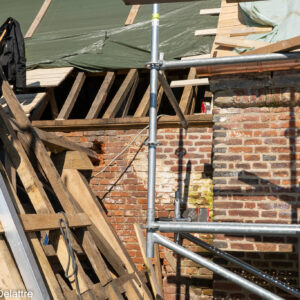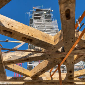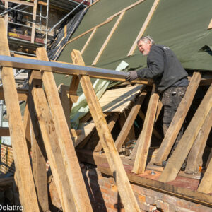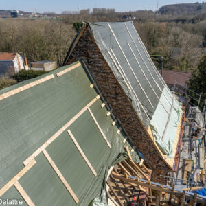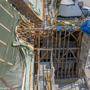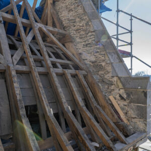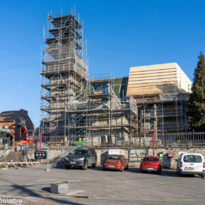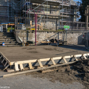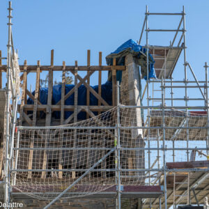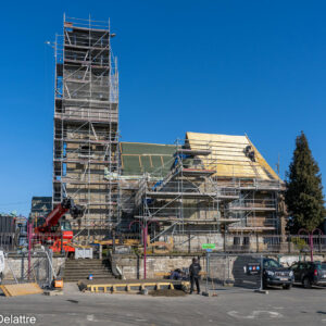 La météo clémente de la semaine dernière a permis aux équipes des maçons, couvreurs et charpentier de considérablement avancer sur le chantier. Une dalle en béton a été réalisée sur la Place. Elle permettra de recevoir la flèche de la tour du clocher qui devrait être décrochée dans les jours à venir en vue de la restauration de sa charpente.