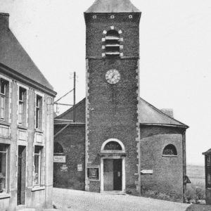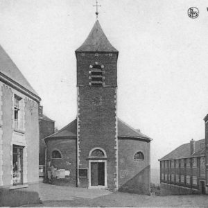 La destruction des murs du cimetière et du porche de l’église débuta le 3 février 1827. On fit sauter les murs à la poudre noire. Le 14 mars 1827 l’église n’existait plus. Les fouilles pour les fondations commencèrent le 16 et la première pierre fut posée au coin de la sacristie par le maçon Herman de Braine-le-Château le 20 mars 1827 à midi.