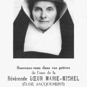 Avant la prise des cloches de l’église par les Allemands en 1943, des hommes du village se relayaient jour et nuit pour sonner les cloches et ainsi les rendre tellement chaude que l’occupant ne pouvait les descendre du clocher. Lors de la saisie, un officier crut voir deux hommes à une des fenêtres du couvent. On raconte à tort ou a raison que deux résistants voulaient prendre des photos de ce vol. Accompagné de soldats, un officier allemand se précipita à la porte du couvent pour y entrer. La révérende mère venue ouvrir jura sur son honneur de religieuse qu’il n’y avait aucun homme dans son couvent. Devant cette affirmation l’officia tourna les talons. Ensuite, Sœur Marie-Michel convoqua toute sa congrégation pour avouer son mensonge et demander pardon. Elle sera décorée à Hal en 1946 pour son acte de bravoure et de courage envers sa patrie.