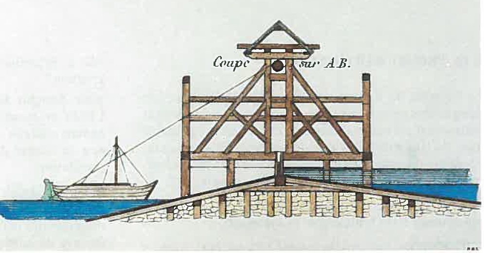 “Le plan incliné à double coulisse s’étendait entre deux biefs en se prolongeant de 60 pieds dans chacun de ceux-