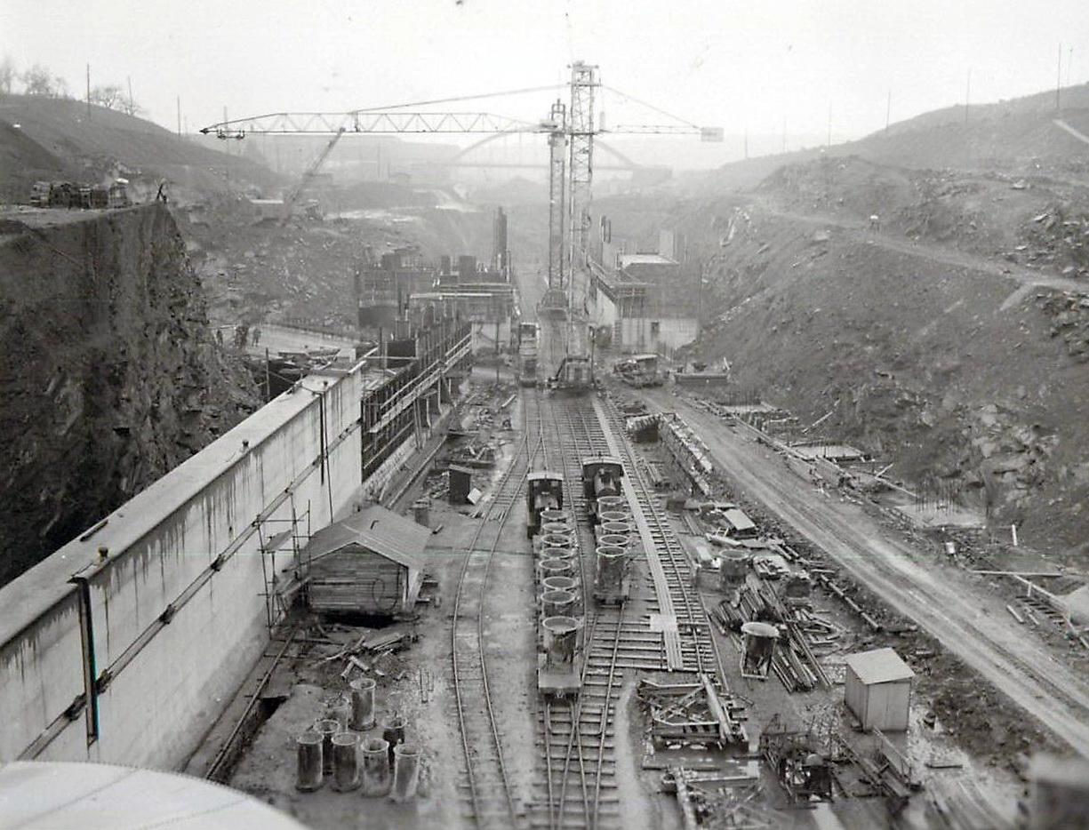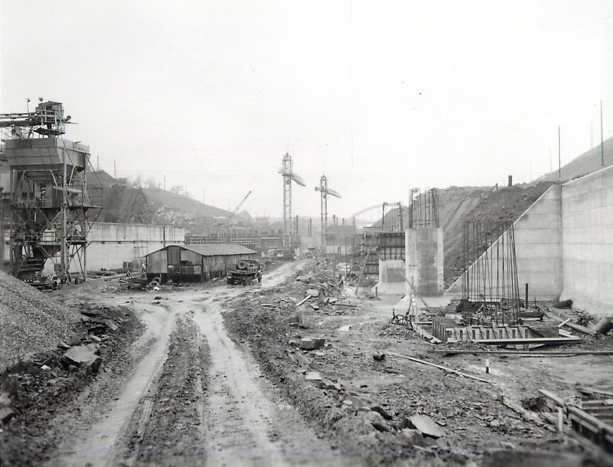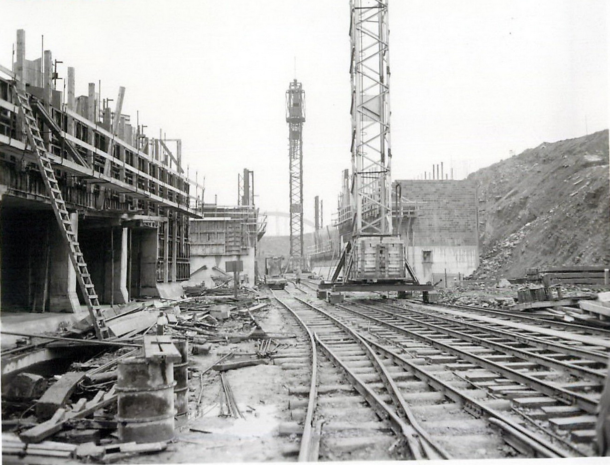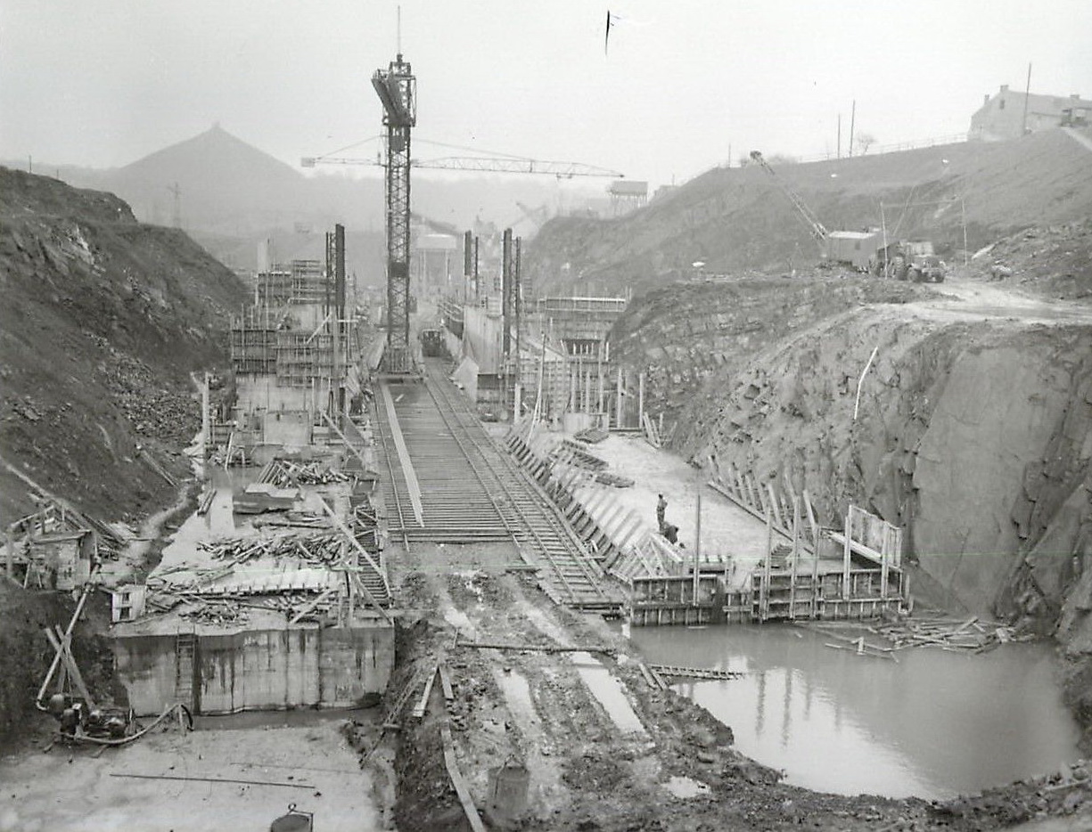 Les archives photographiques ont été généreuses qui nous ont permis de retracer assez précisément les trois années du chantier de construction de l’écluse de Gosselies . On constatera qu’ici comme à Ronquières, à Ittre, Asquimpont, le chantier s’est déroulé en dehors de toute infrastructure existante, permettant aux contractants de travailler sans pression excessive.