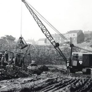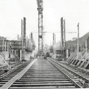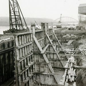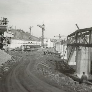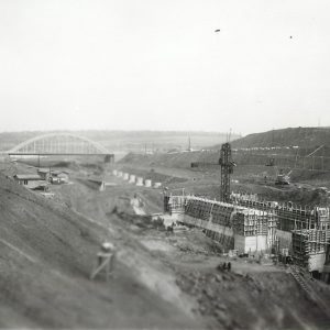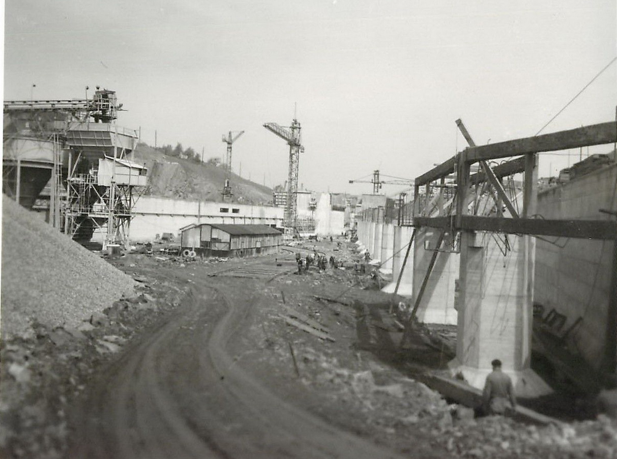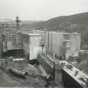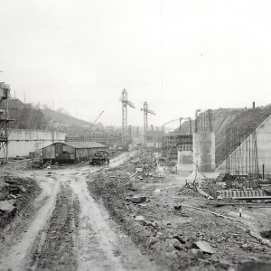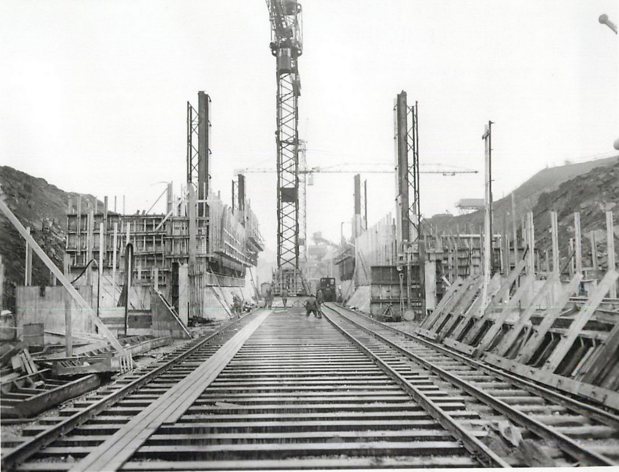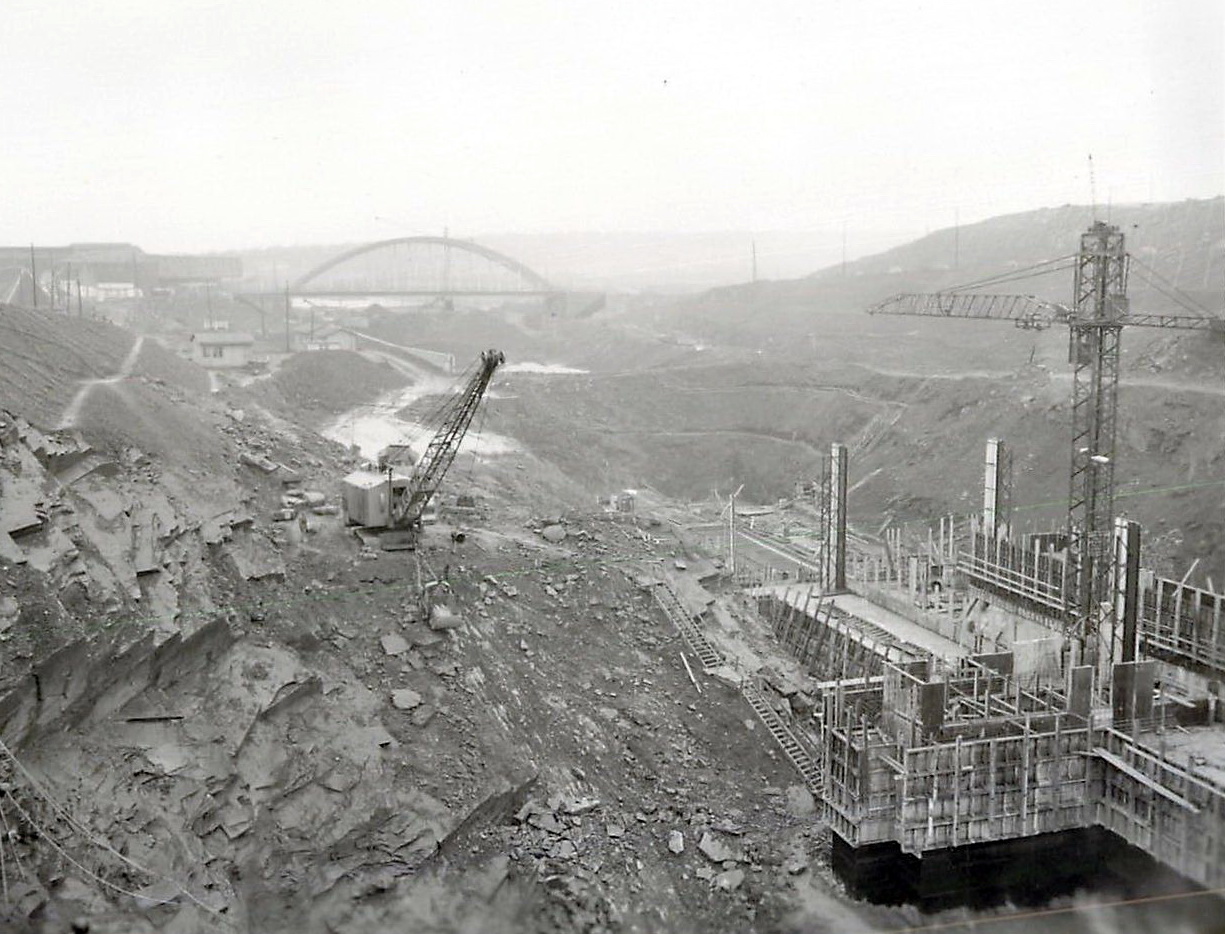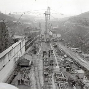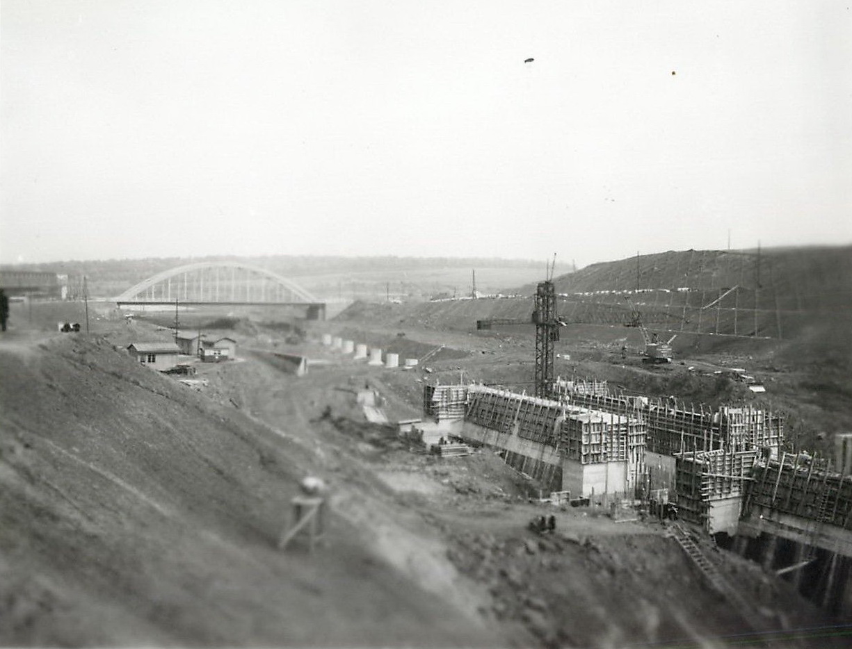 Les archives photographiques ont été généreuses qui nous ont permis de retracer assez précisément les trois années du chantier de construction de l’écluse de Gosselies . On constatera qu’ici comme à Ronquières, à Ittre, Asquimpont, le chantier s’est déroulé en dehors de toute infrastructure existante, permettant aux contractants de travailler sans pression excessive.