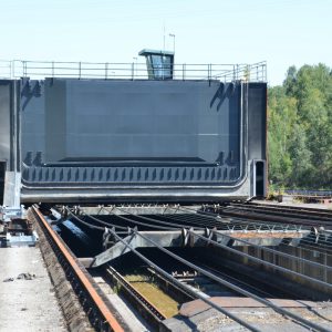 Dans le cadre du projet majeur de rénovation du plan incliné de Ronquières, l’ensemble de la tringlerie du bac numéro un et de son contrepoids a été remplacée.