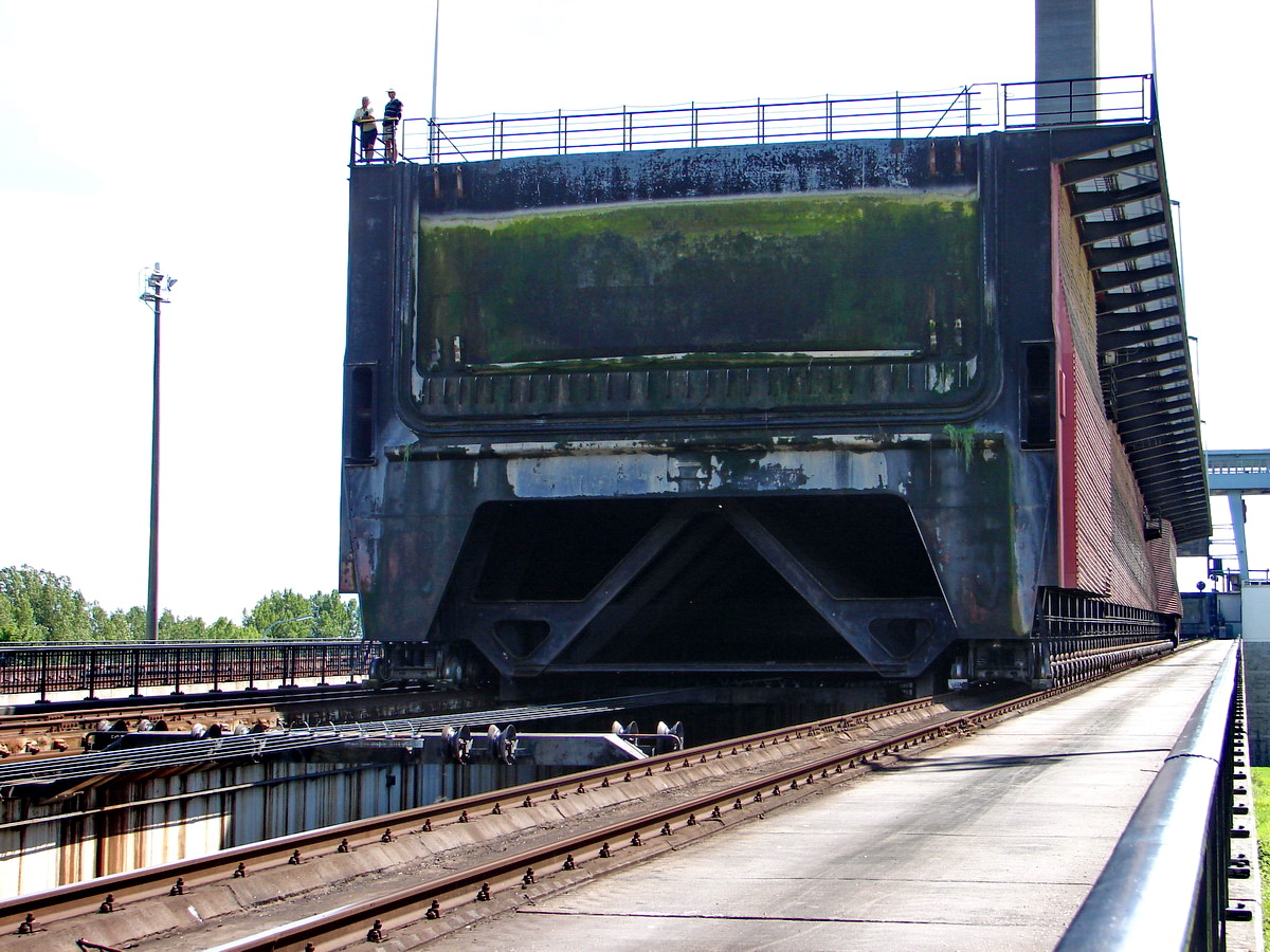 Le bac, c’est le sas de l’écluse avec une petite nuance: ici il roule et gravit une colline plutôt que de se remplir ou de se vider.