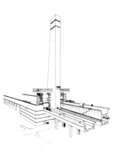 De même, 192 galets et 4 rails supportent le contrepoids qui se déplace sous le bac dans une trémie en béton armé.