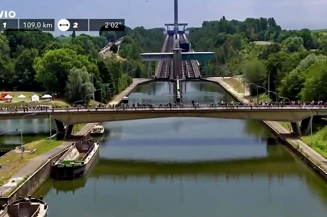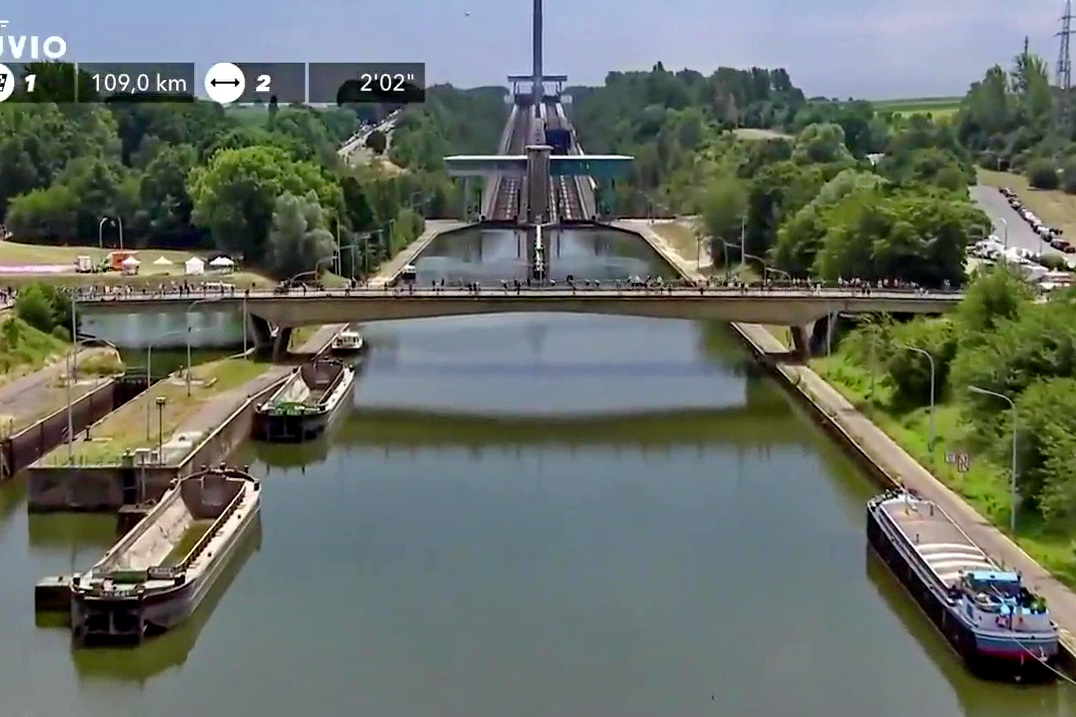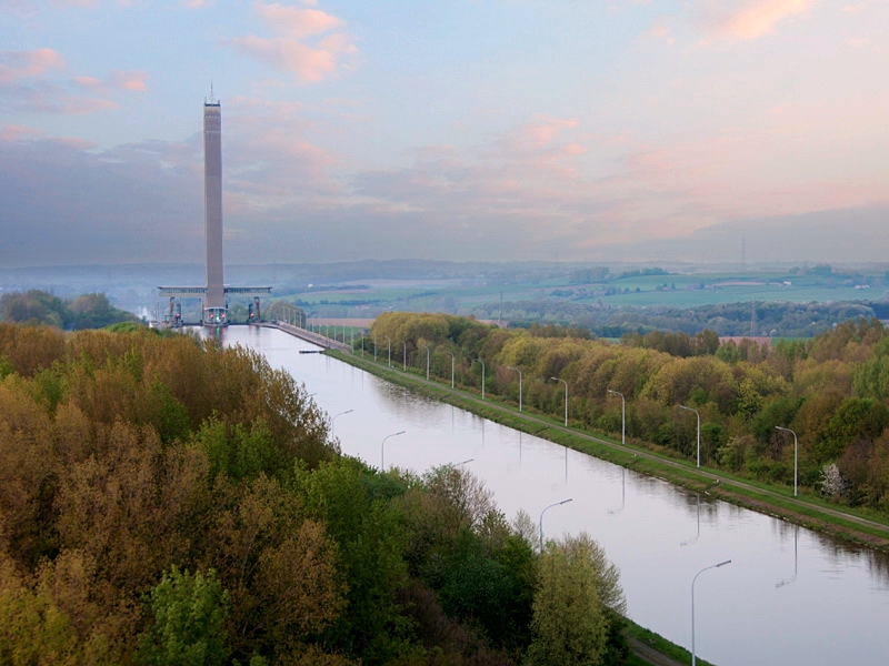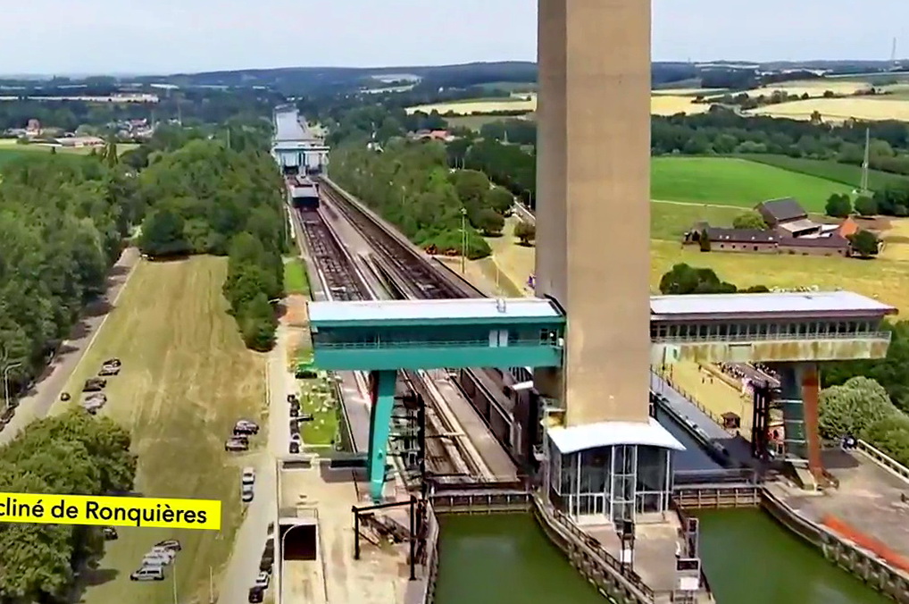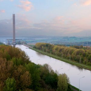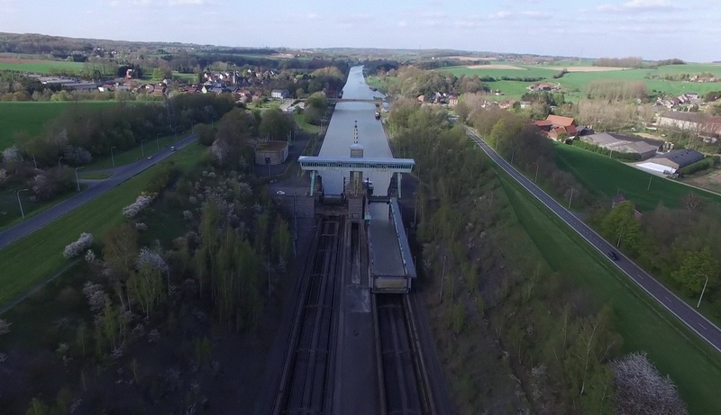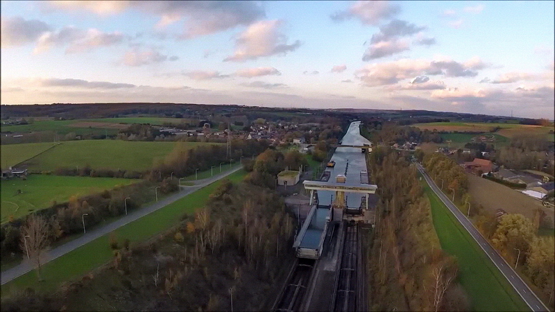 En prenant de la hauteur on prend pleinement conscience de la taille du plan incliné de Ronquières, de son étendue, de la grandeur de l’ouvrage.
