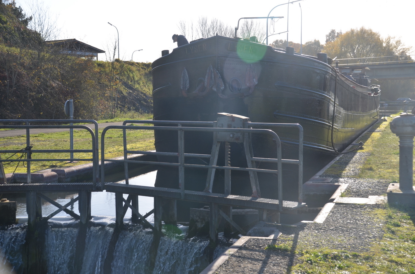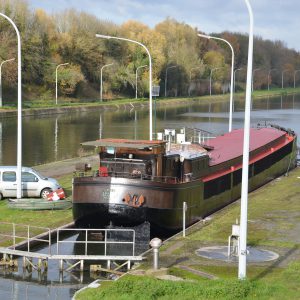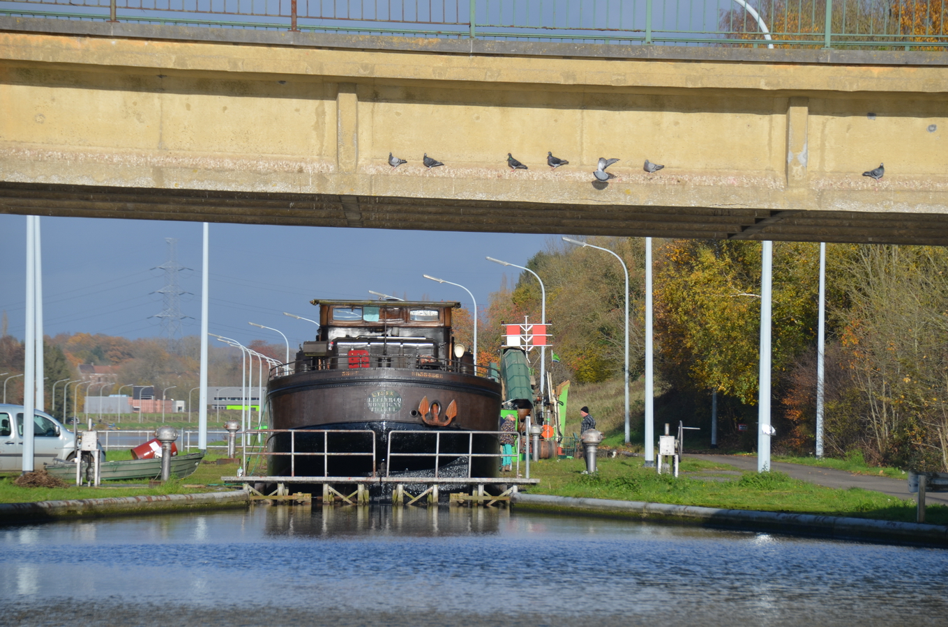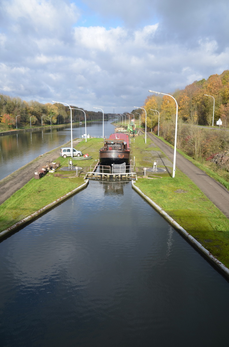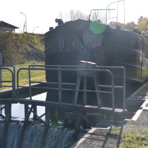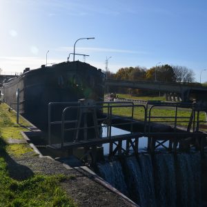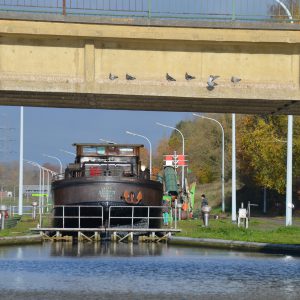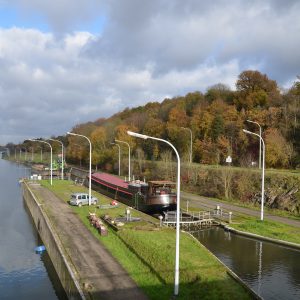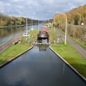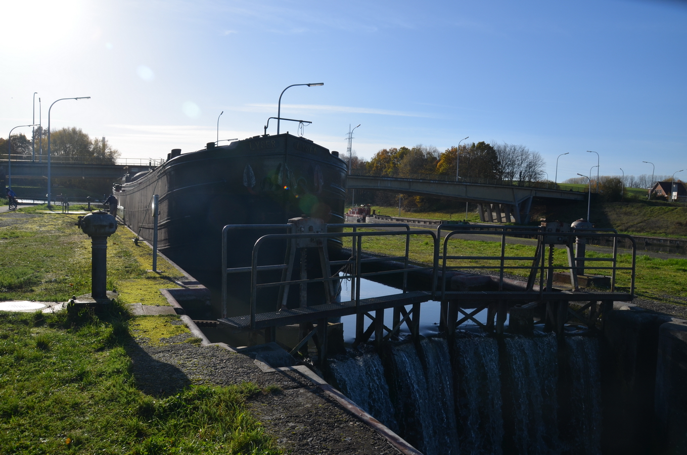 Le reportage a été réalisé en juillet 2018 dans l’écluse 28 qui assure la jonction entre l’ancienne section du canal à 300 tonnes encore accessible et le nouveau canal, à l’aval du plan incliné de Ronquières.