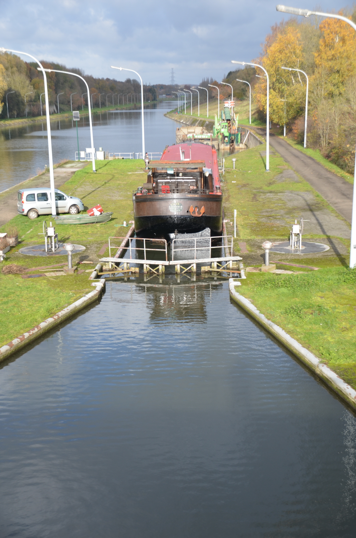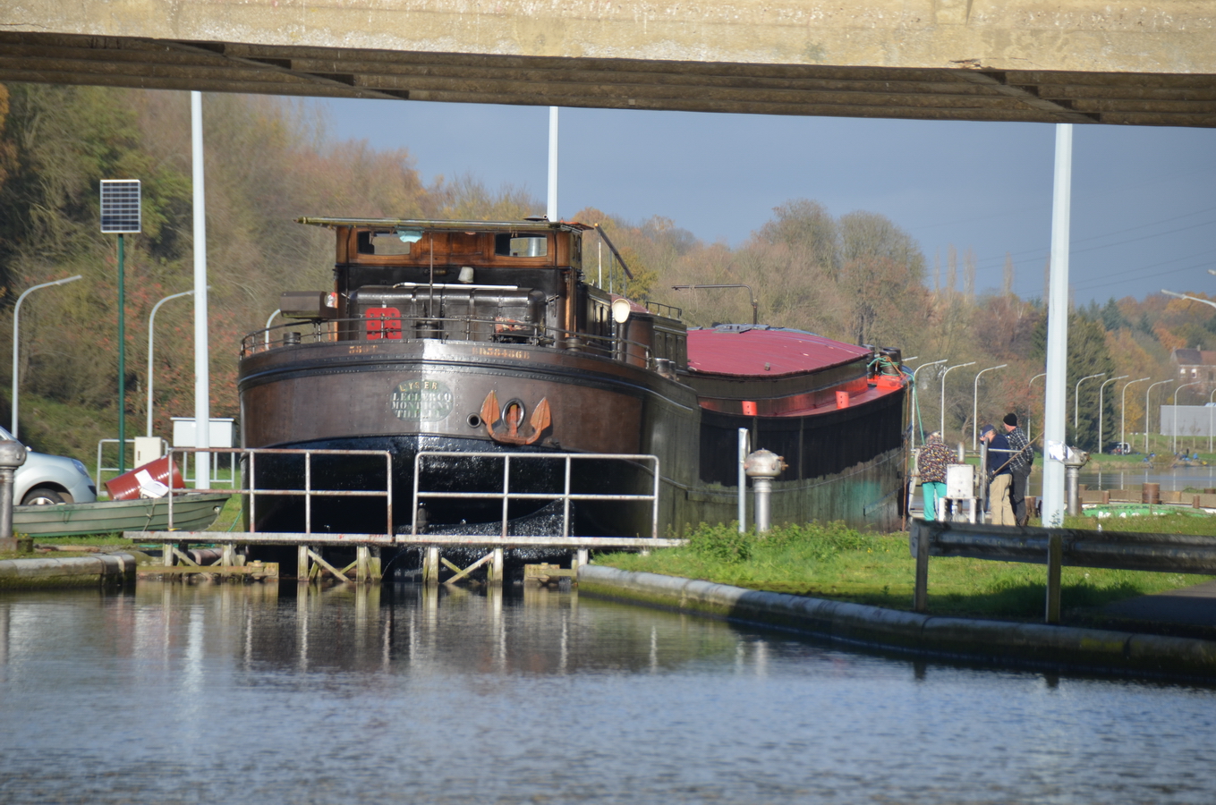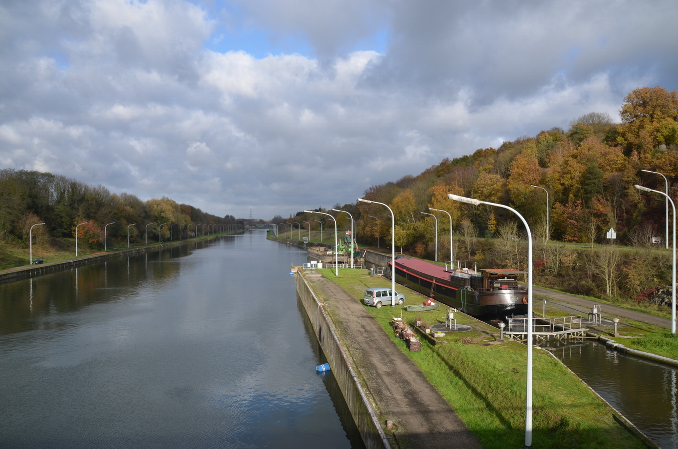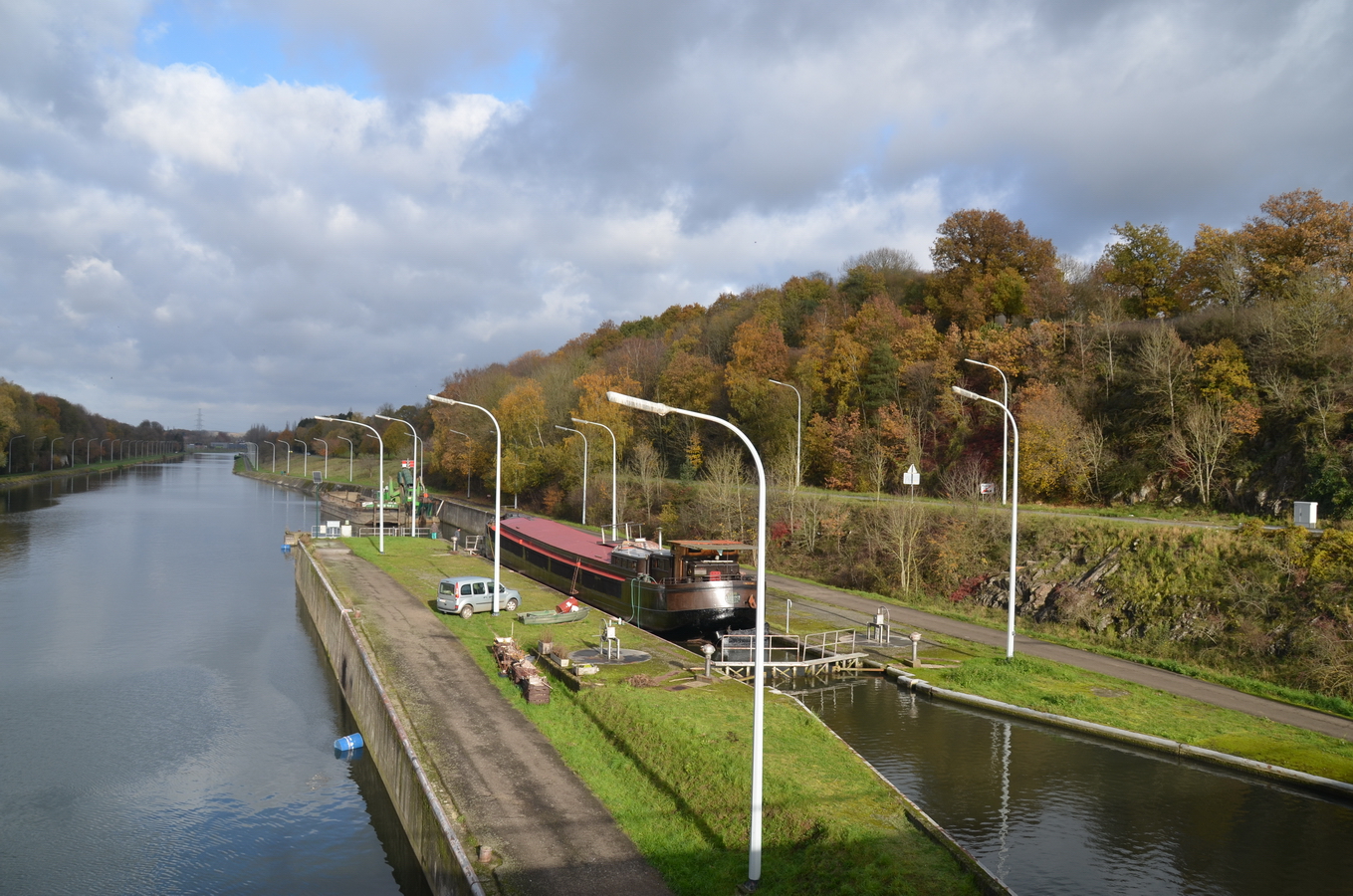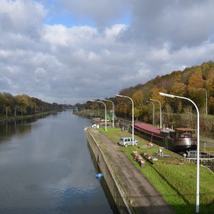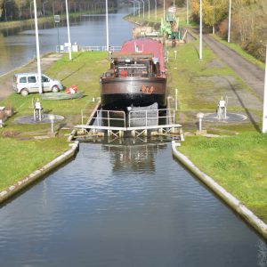 Le reportage a été réalisé en juillet 2018 dans l’écluse 28 qui assure la jonction entre l’ancienne section du canal à 300 tonnes encore accessible et le nouveau canal, à l’aval du plan incliné de Ronquières.