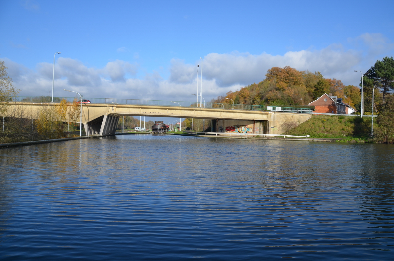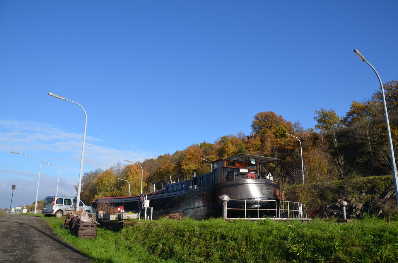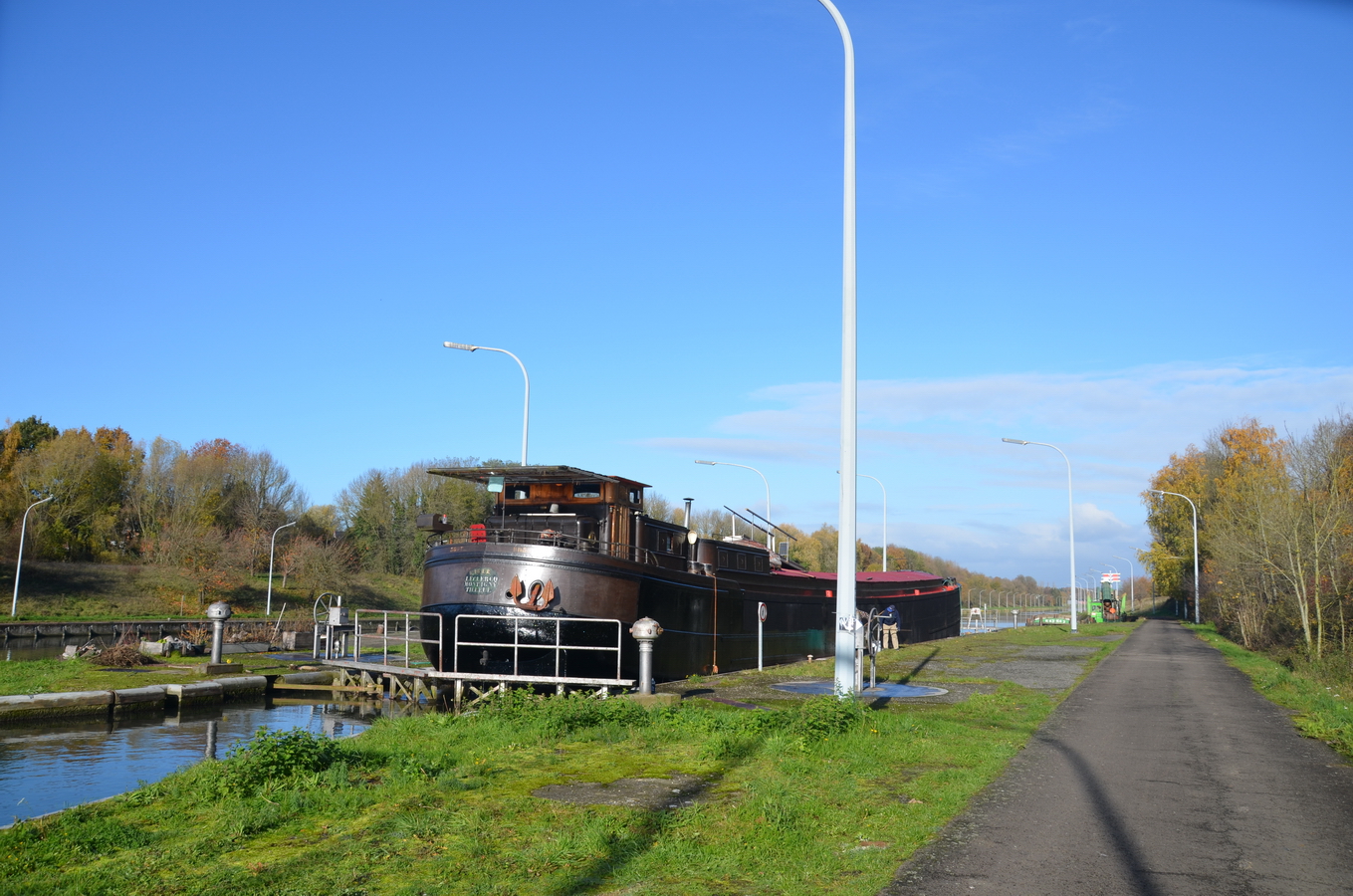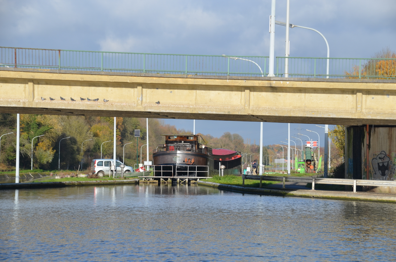 Le reportage a été réalisé en juillet 2018 dans l’écluse 28 qui assure la jonction entre l’ancienne section du canal à 300 tonnes encore accessible et le nouveau canal, à l’aval du plan incliné de Ronquières.