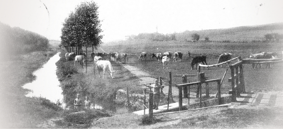 L’endroit est aujourd’hui méconnaissable …. La photo de l’époque à été prise au niveau de l’actuel carrefour entre la Rue Reine Astrid et la Rue des Ponts. On y trouve…